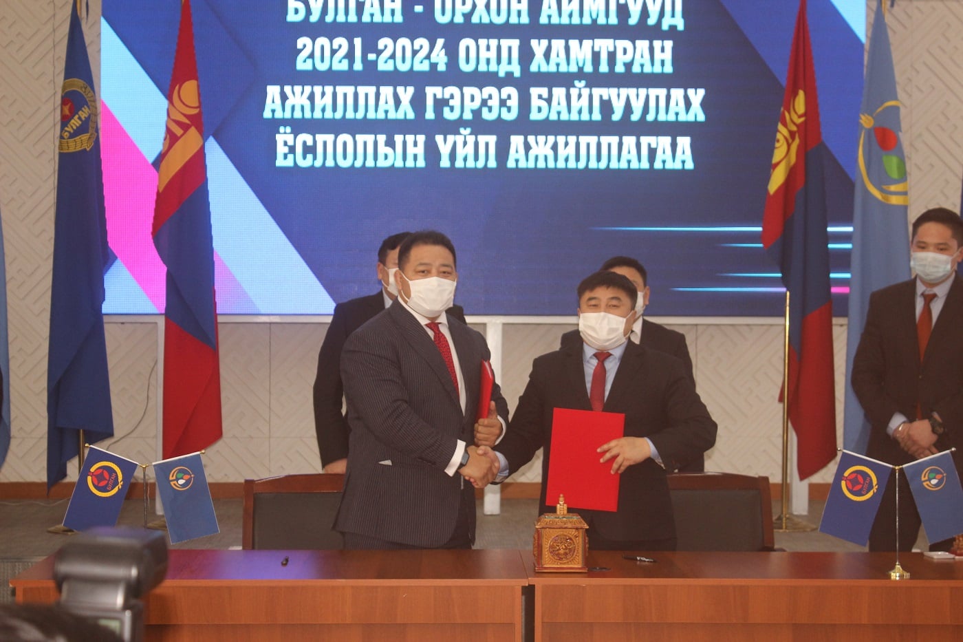Орхон аймаг Булган аймагтай 2021-2024 онд хамтран ажиллах төлөвлөгөө, төрийн байгууллагуудын салбар хоорондын үйл ажиллагааны төлөвлөгөөг баталгаажуулах арга хэмжээ өнөөдөр буюу 2021 оны 02 сарын 17-ны өдөр Булган аймгийн Засаг даргын тамгын газарт зохион байгуулагдлаа. Уг арга хэмжээнд Орхон, Булган аймгийн Засаг дарга нар ИТХ-ын дарга, аймгийн болон холбогдох байгууллагын дарга, удирдлагууд оролцлоо.